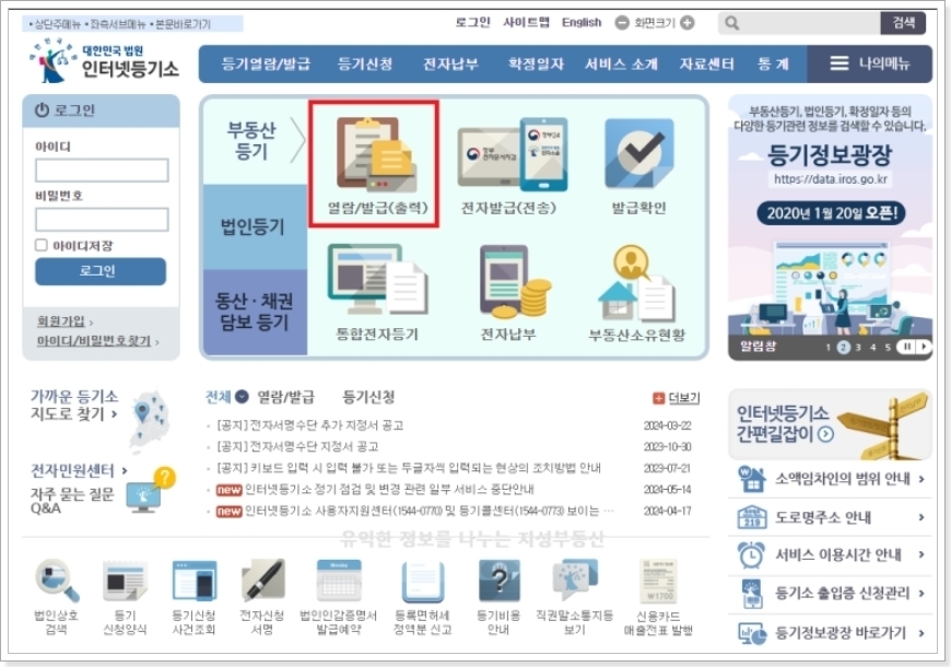 등기부등본 인터넷발급 바로가기